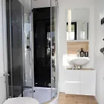 객실에는 커피 및 티 메이커, 커피 및 티 메이커, 연기 감지기뿐만 아니라 작은 부엌도 완비되어 있습니다. 이 아파트에는 쪽모이 세공 바닥이 있습니다.